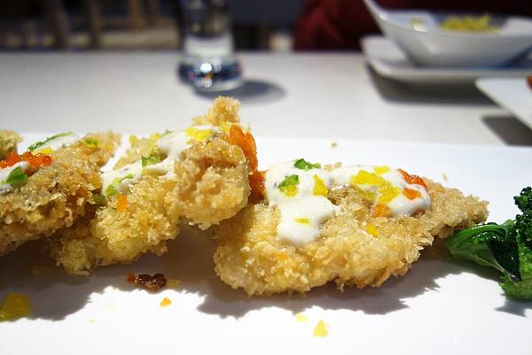 另道炸魚則是配上類似白色的醬汁,魚肉鮮嫩,醬料調配恰到好處。
