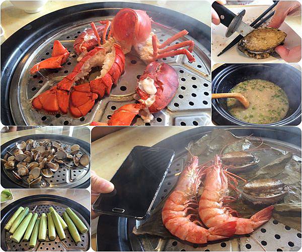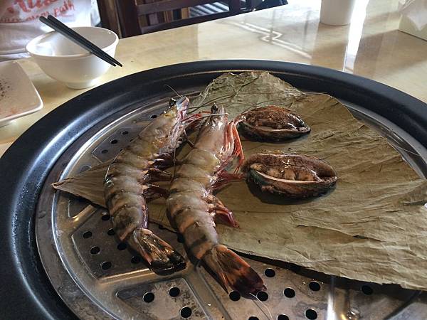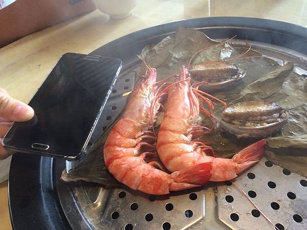 活鮑魚與大海老一起蒸,所需時間稍微久一些,鮑魚比較費工,我印象不深,但我實在太愛蝦子,口感紮實,毫無腥味,非常好吃!
