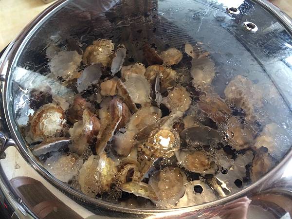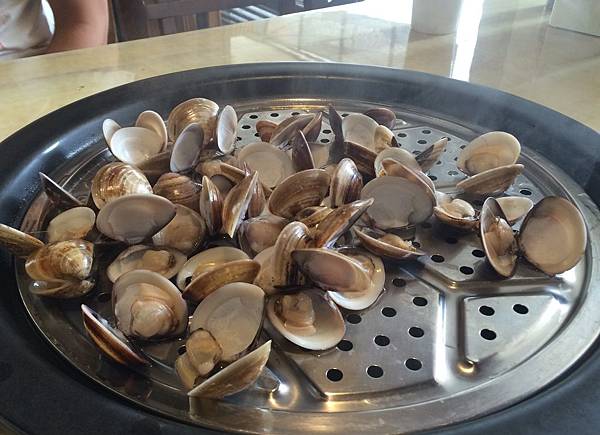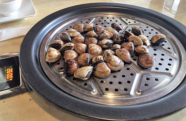 第一道是特大蛤蠣,所需時間不多,一下子就開鍋。在品嘗時,服務員會開始準備下一道料理時間。蛤蠣全開,味道鮮甜,而且熟度恰到好處。