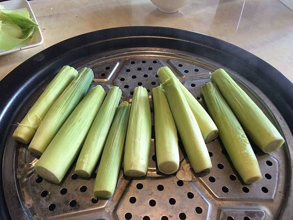 額外加點的小玉米和菜盤,菜盤我們選了高麗菜,不妨可以加調味料,蔬菜清蒸後,當然還是蔬菜,不過吃了海鮮和肉,也需要蔬食平衡一下。