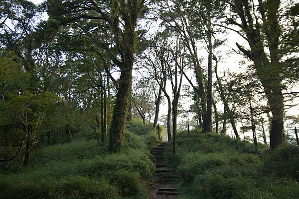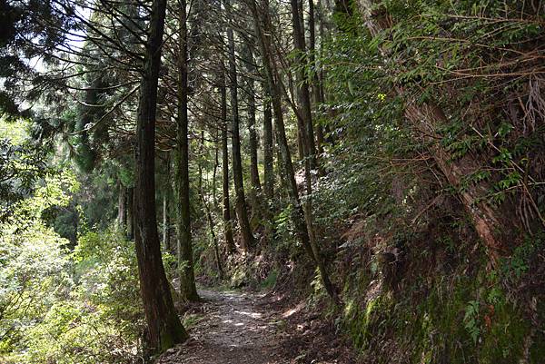 老爸喜愛吸收芬多精,他認為有巨木的地方就是天地精華薈萃之處,但我的解讀比較現實,那應是「較難砍伐之處」,從樂山林道1.2公里入口走入,中段可看見一片筆直的柳杉林,而那正是經過砍伐後人工種植的痕跡,不難想像,觀霧在日治時期或是國民政府來台後,都曾是林業輸出之地(以上沒考據過啊,別認真參考)。